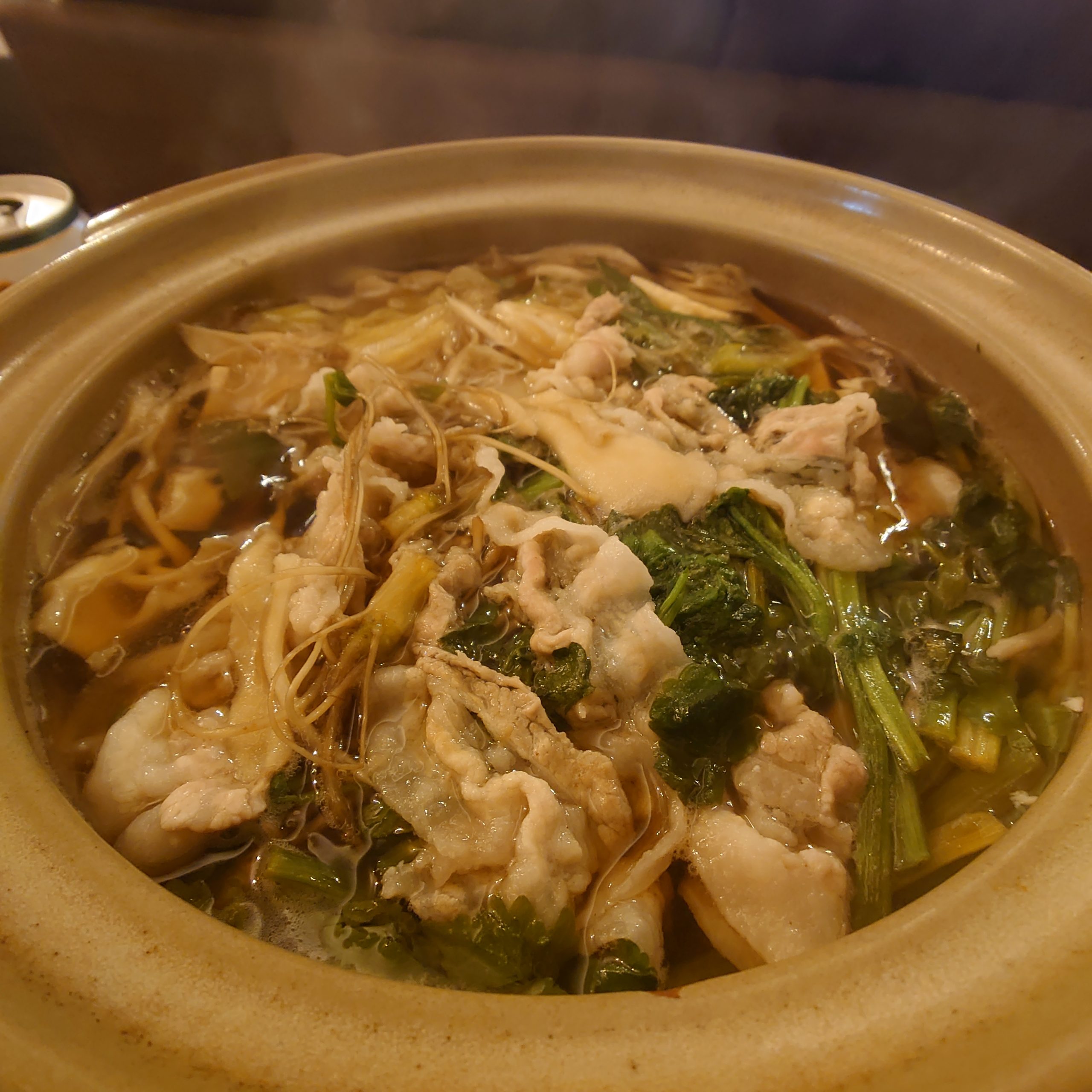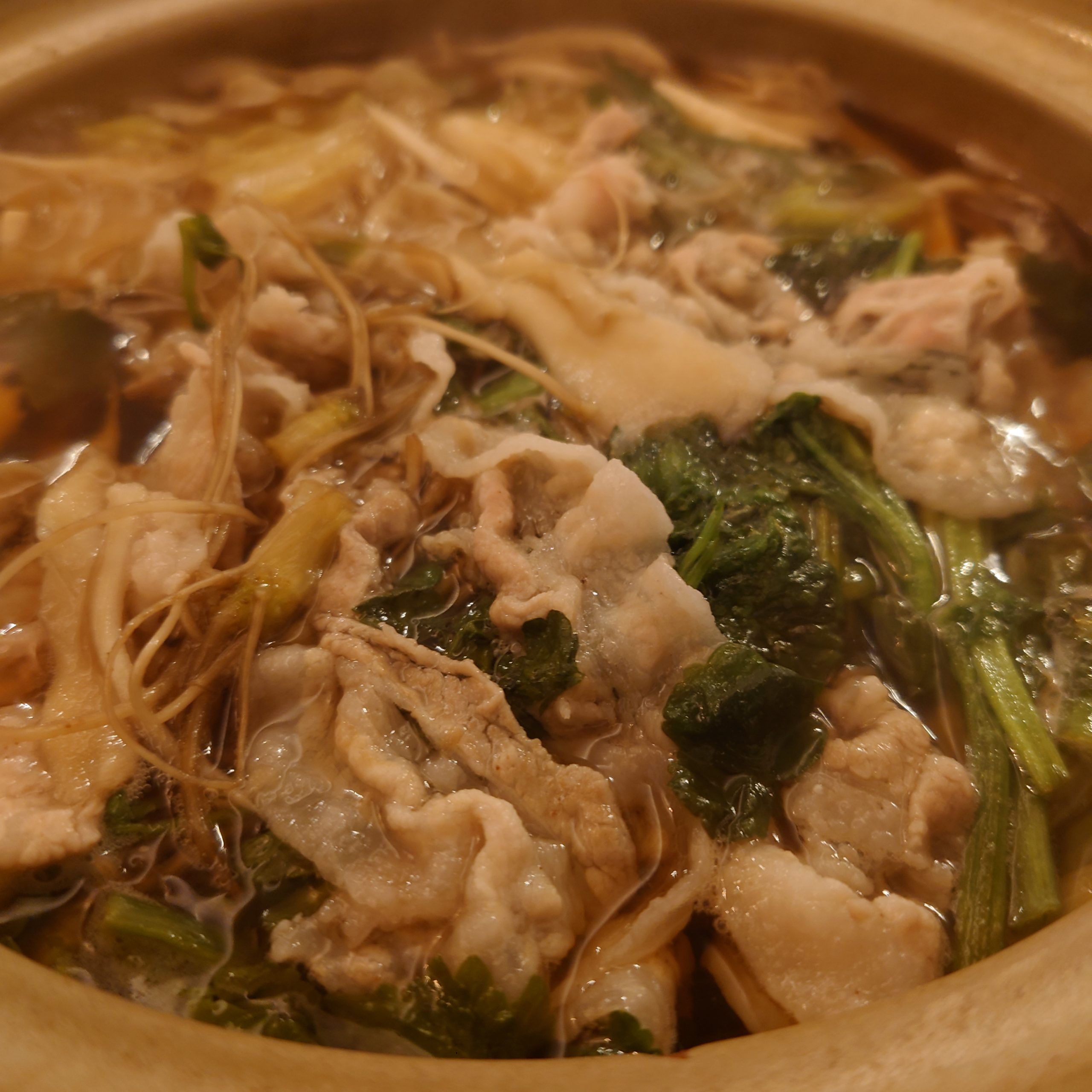 旬のせりと豚肉。