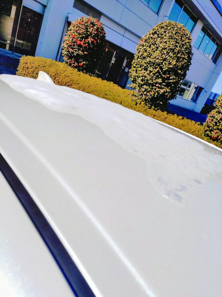 フロントガラスは雪を落としておいたが、屋根の雪はそのままだったので