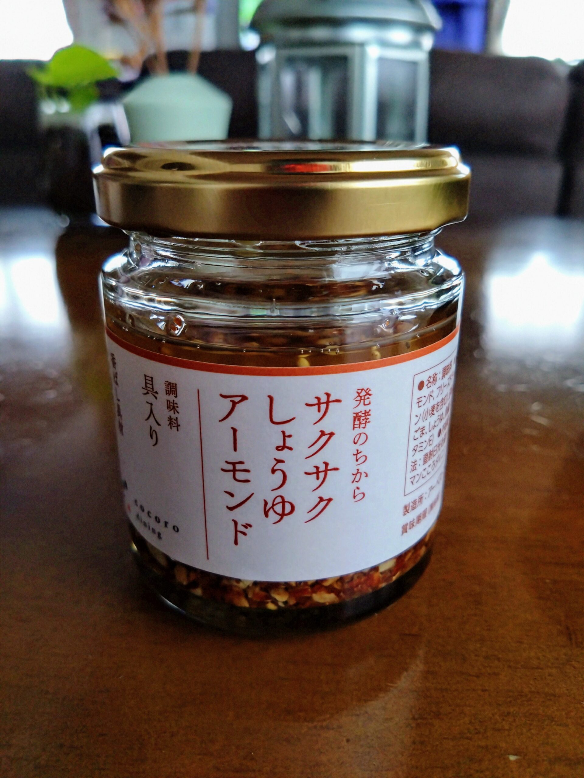 私の誕生日に友人から頂いた、サクサクしょうゆアーモンド。