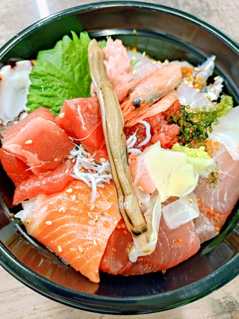 色々なお刺身盛り合わせの丼。