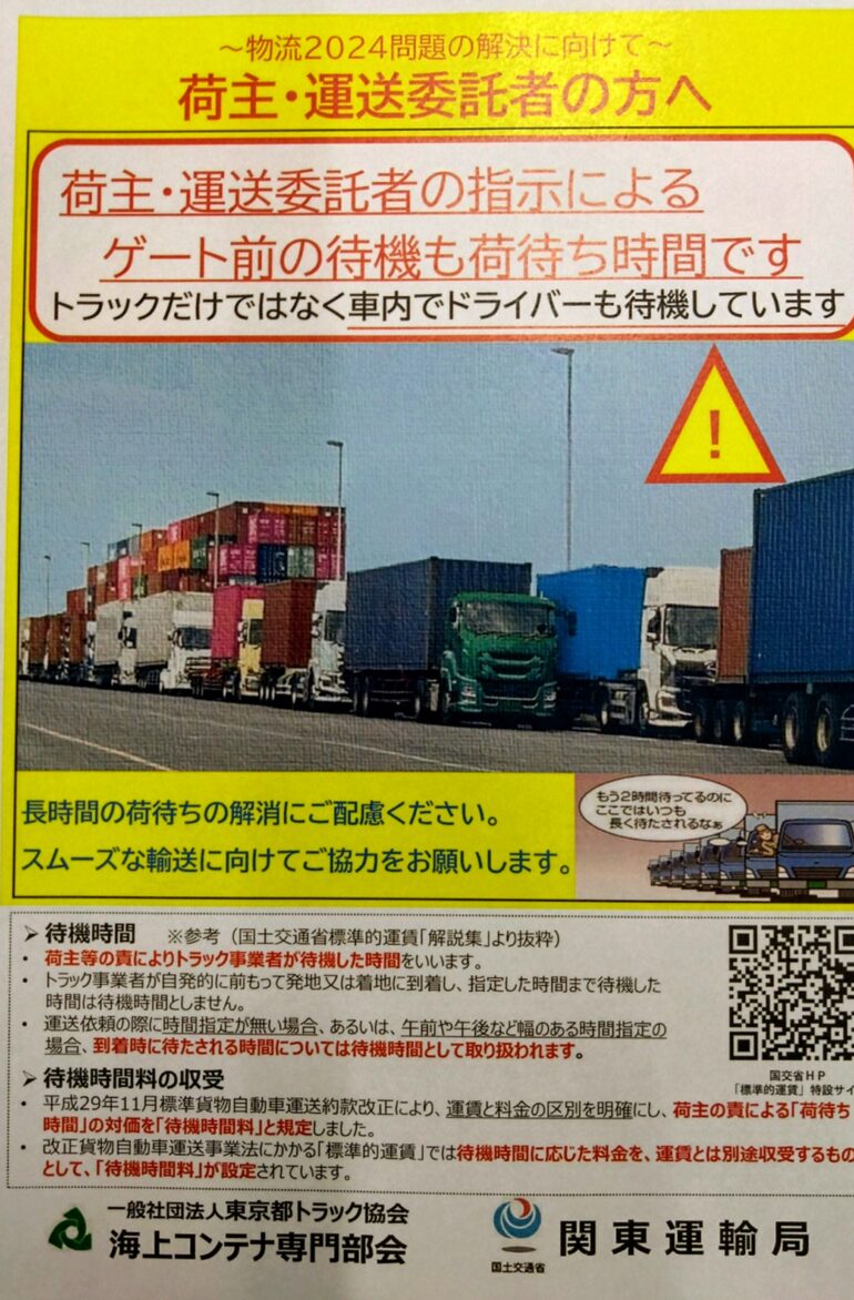 海上コンテ専門部会のリーフレットに港の待機時間問題も待機時間と認められている。