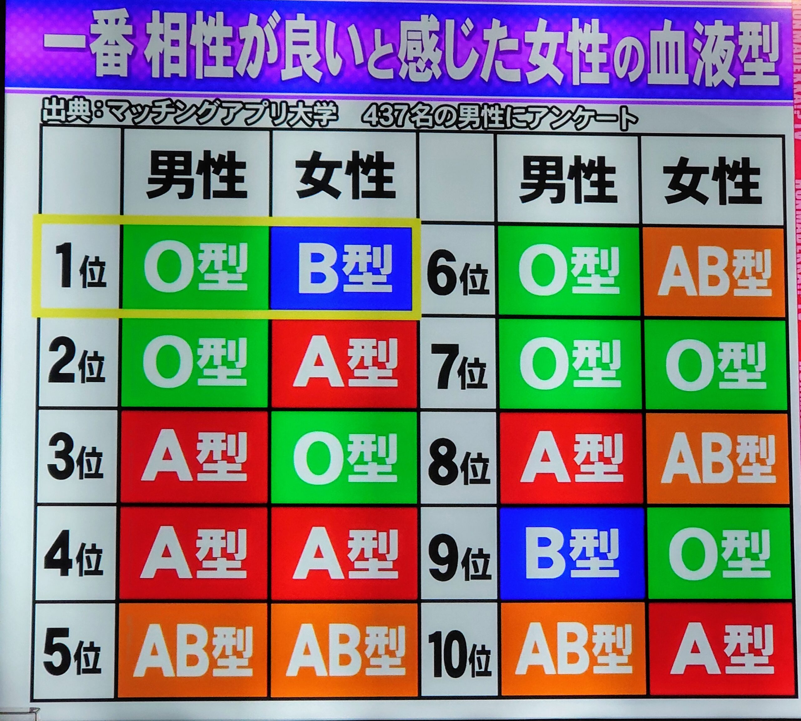📺 先日、テレビで血液型について面白い特集をやっていました!