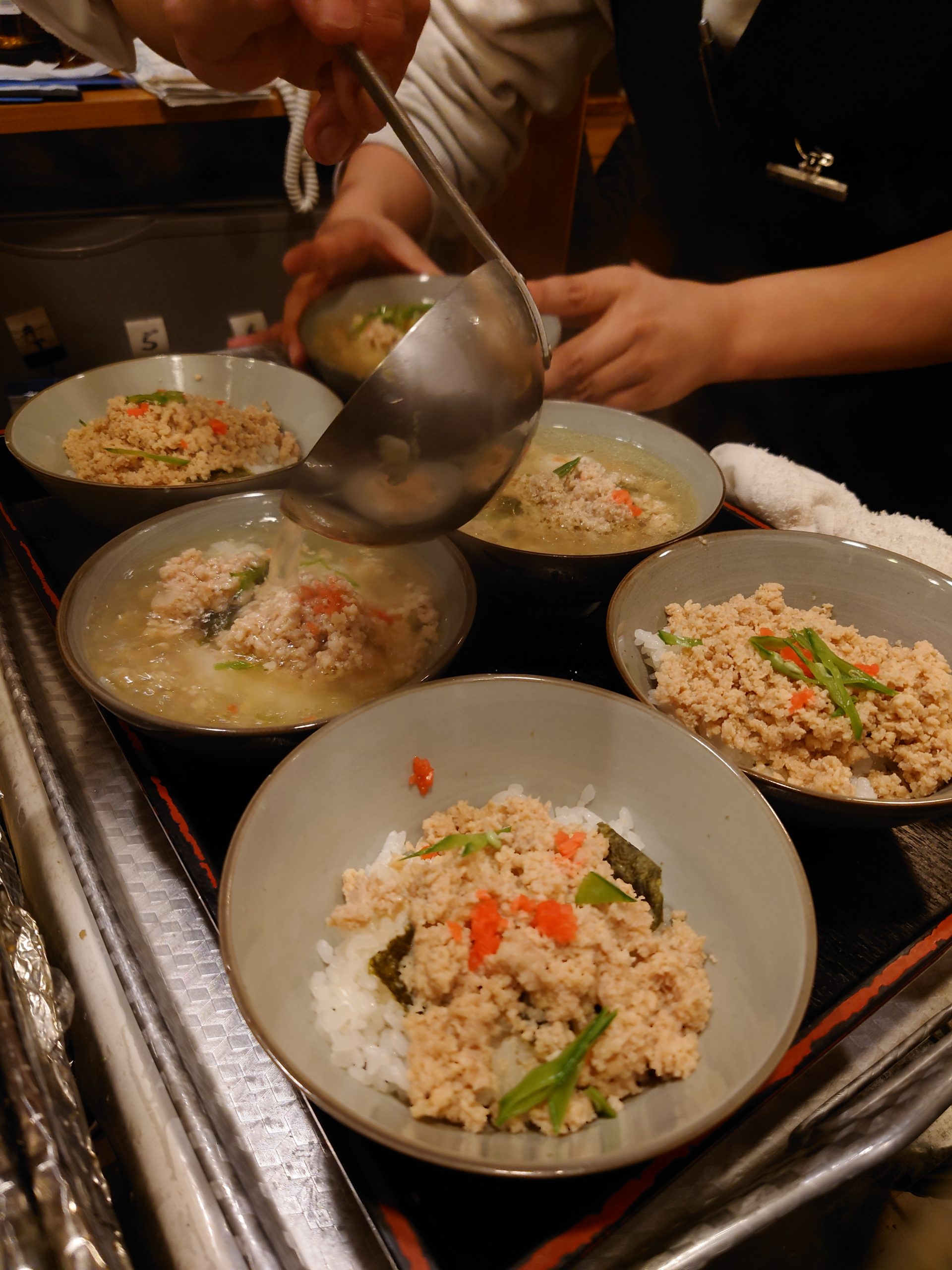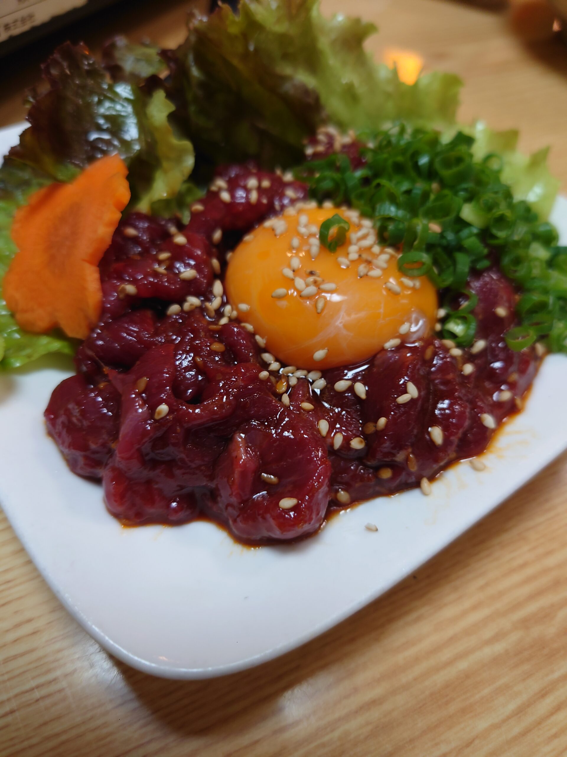 黄味をのせて食べる。