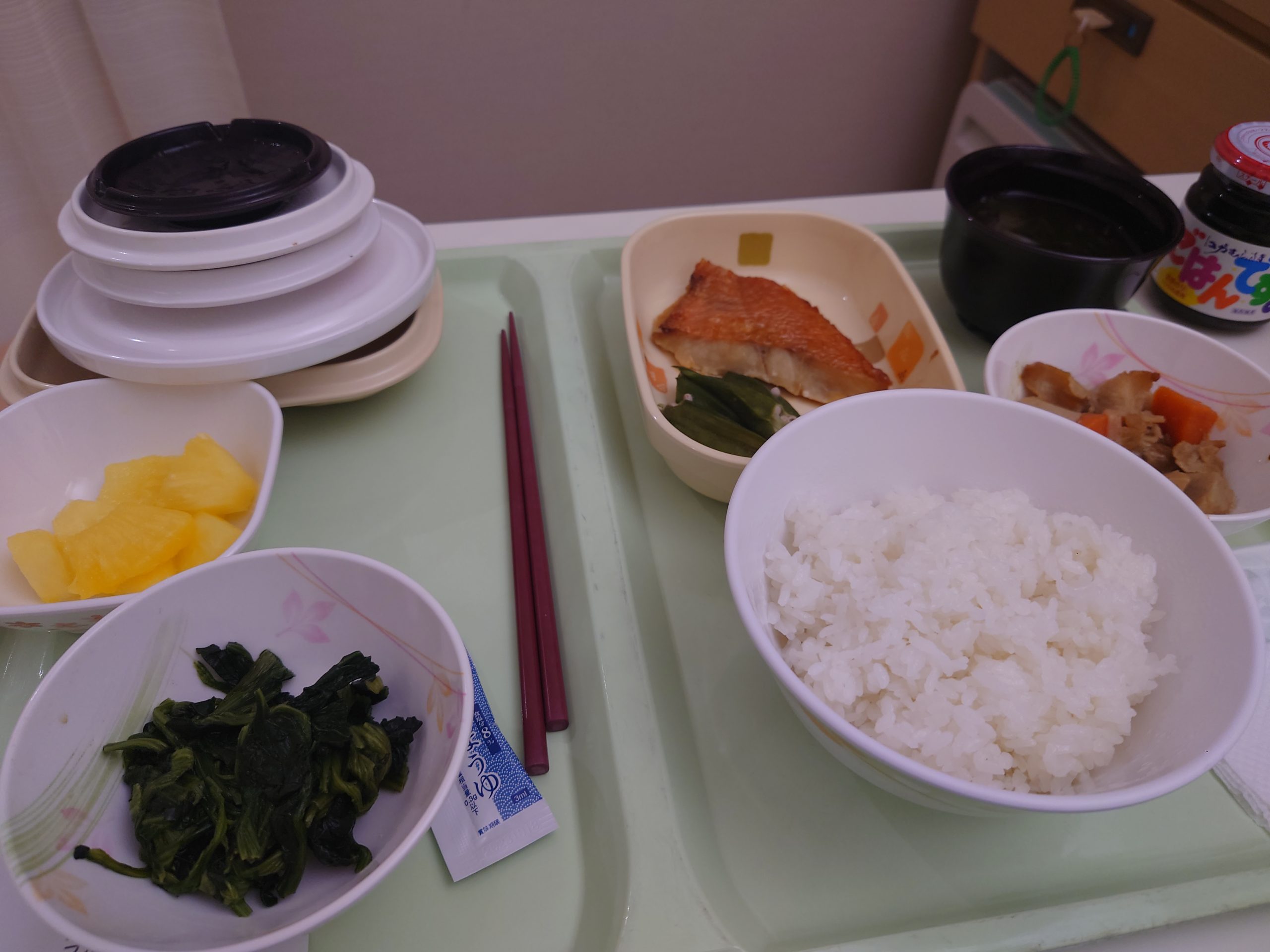 朝食は、生卵ごはん。