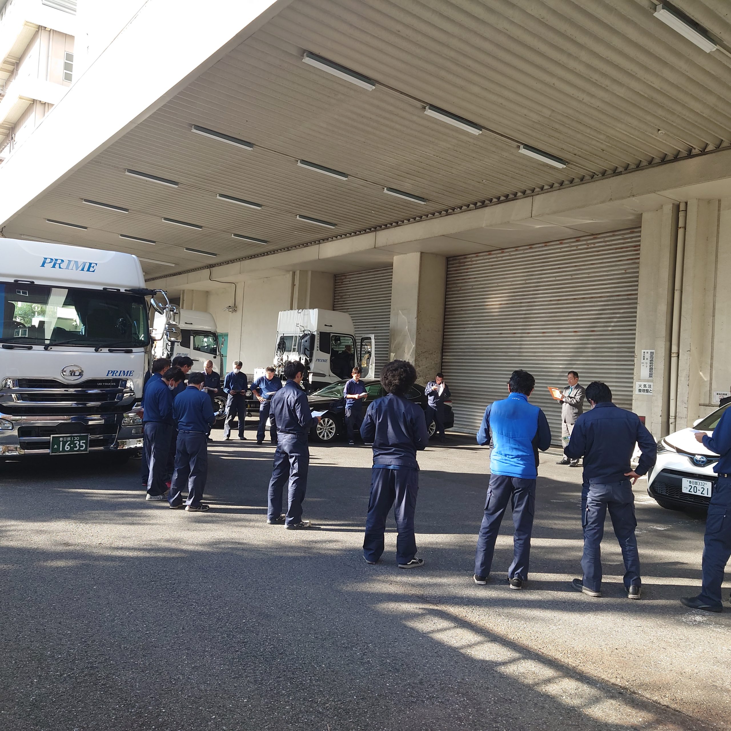 左折時の巻き込み事故の危険予知訓練。