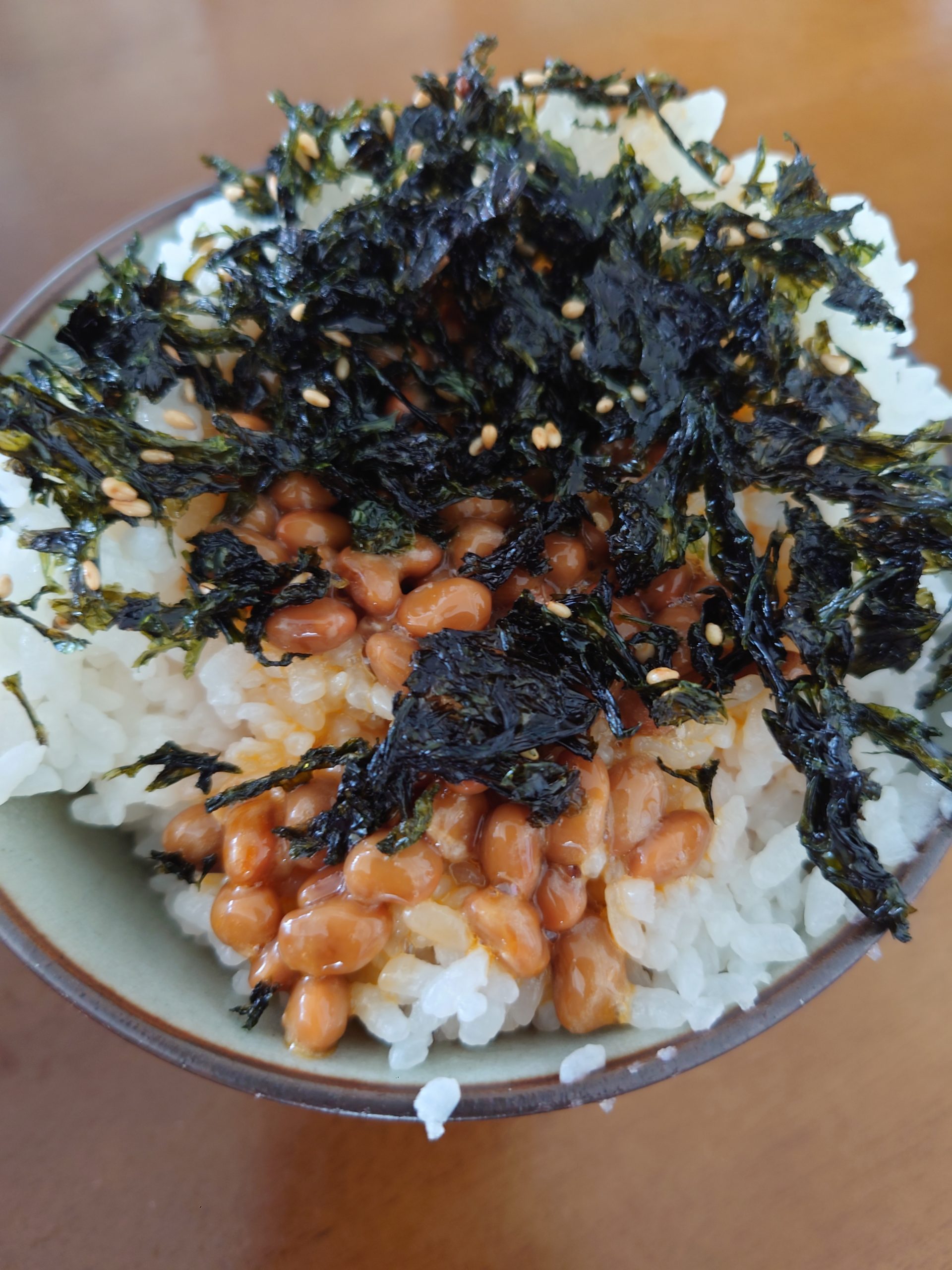 納豆ごはんに韓国のりをぶっかけました