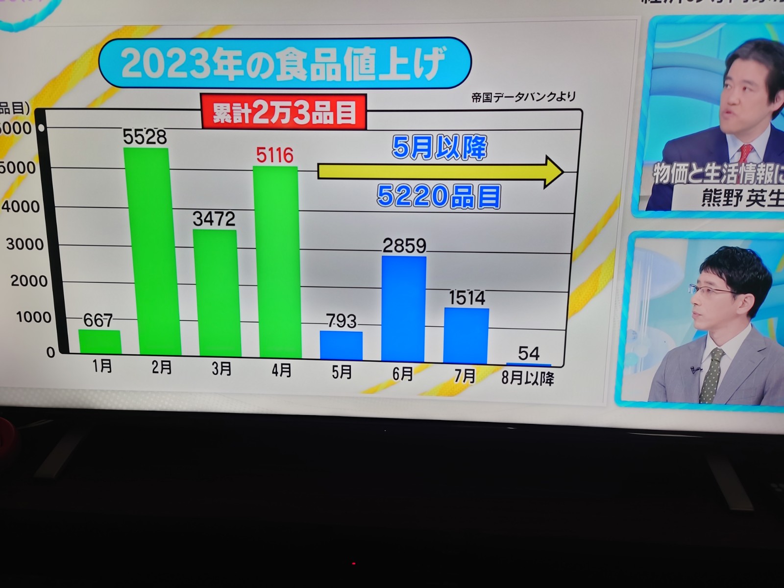 2023年の食品値上げなるものをTVでみました。