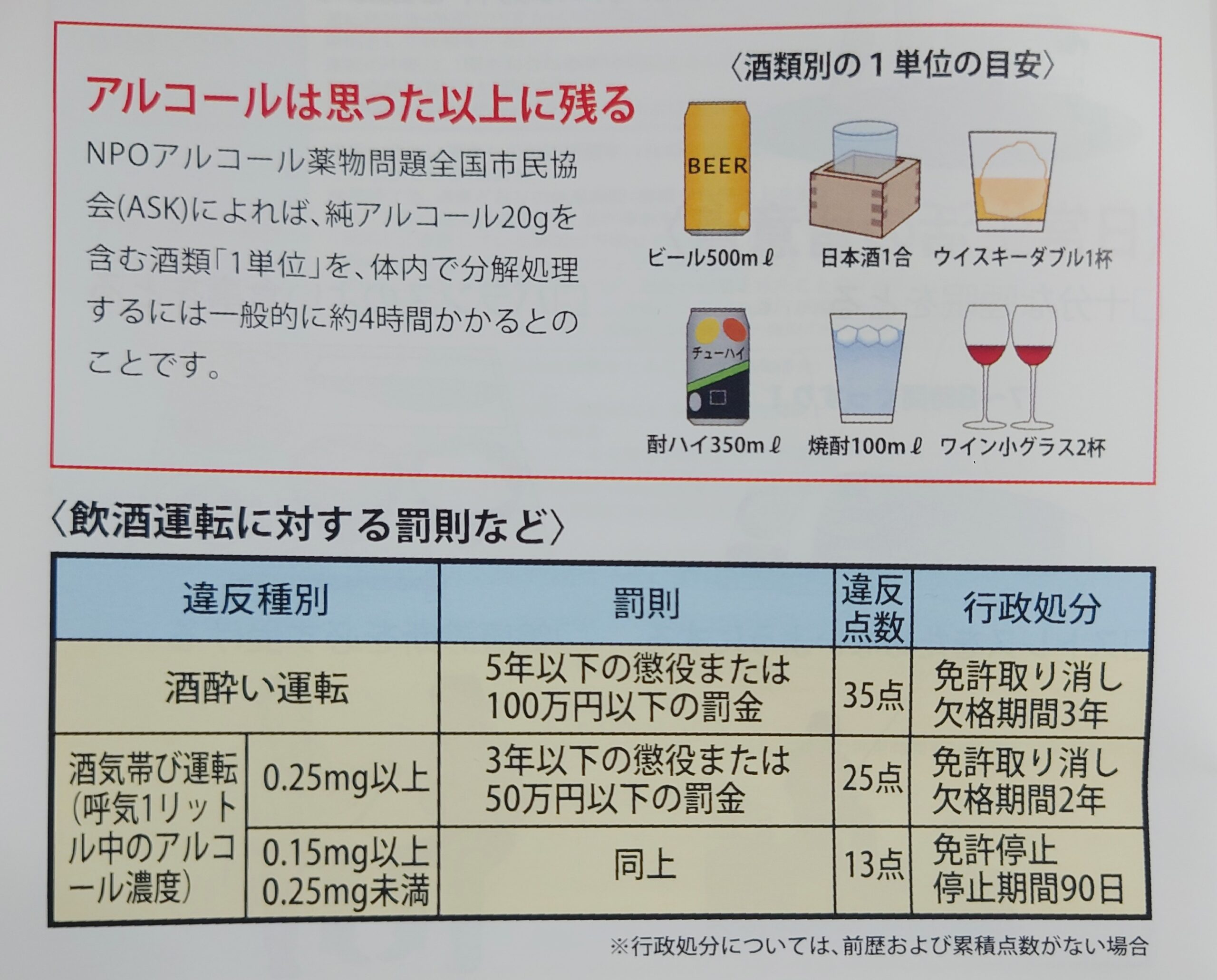 ★残酒などに注意し飲酒運転防止に努める