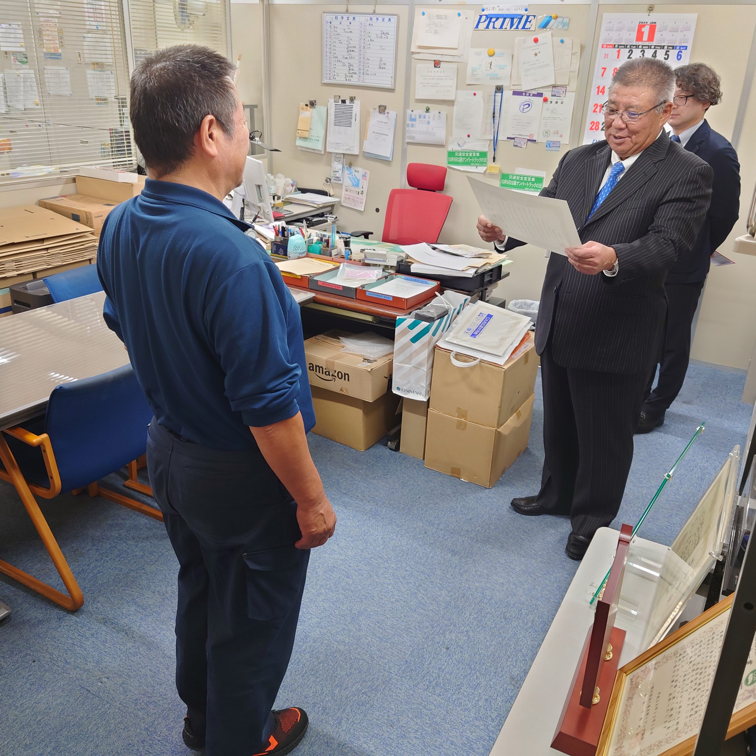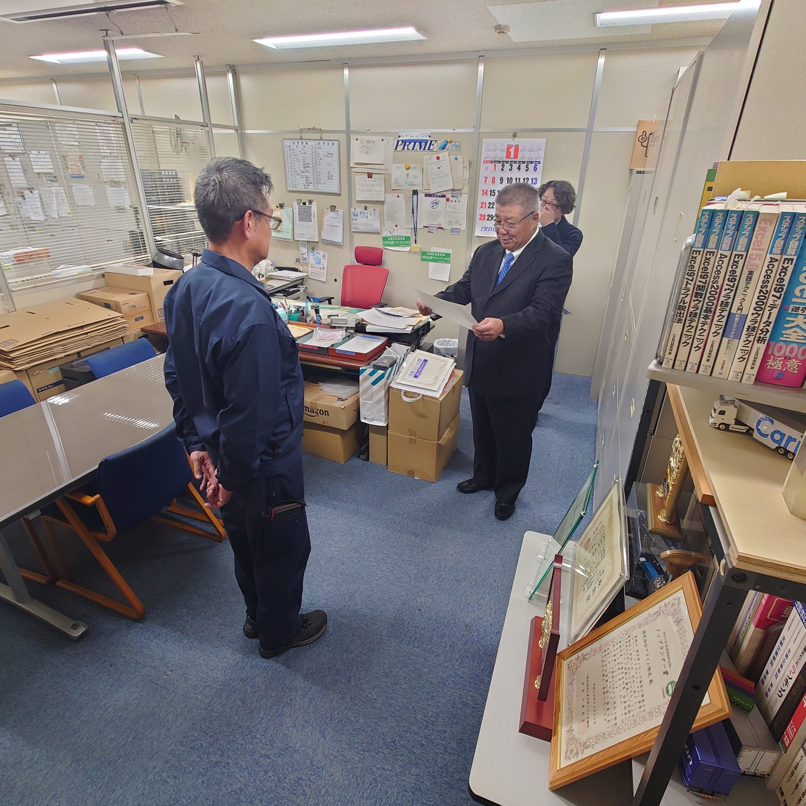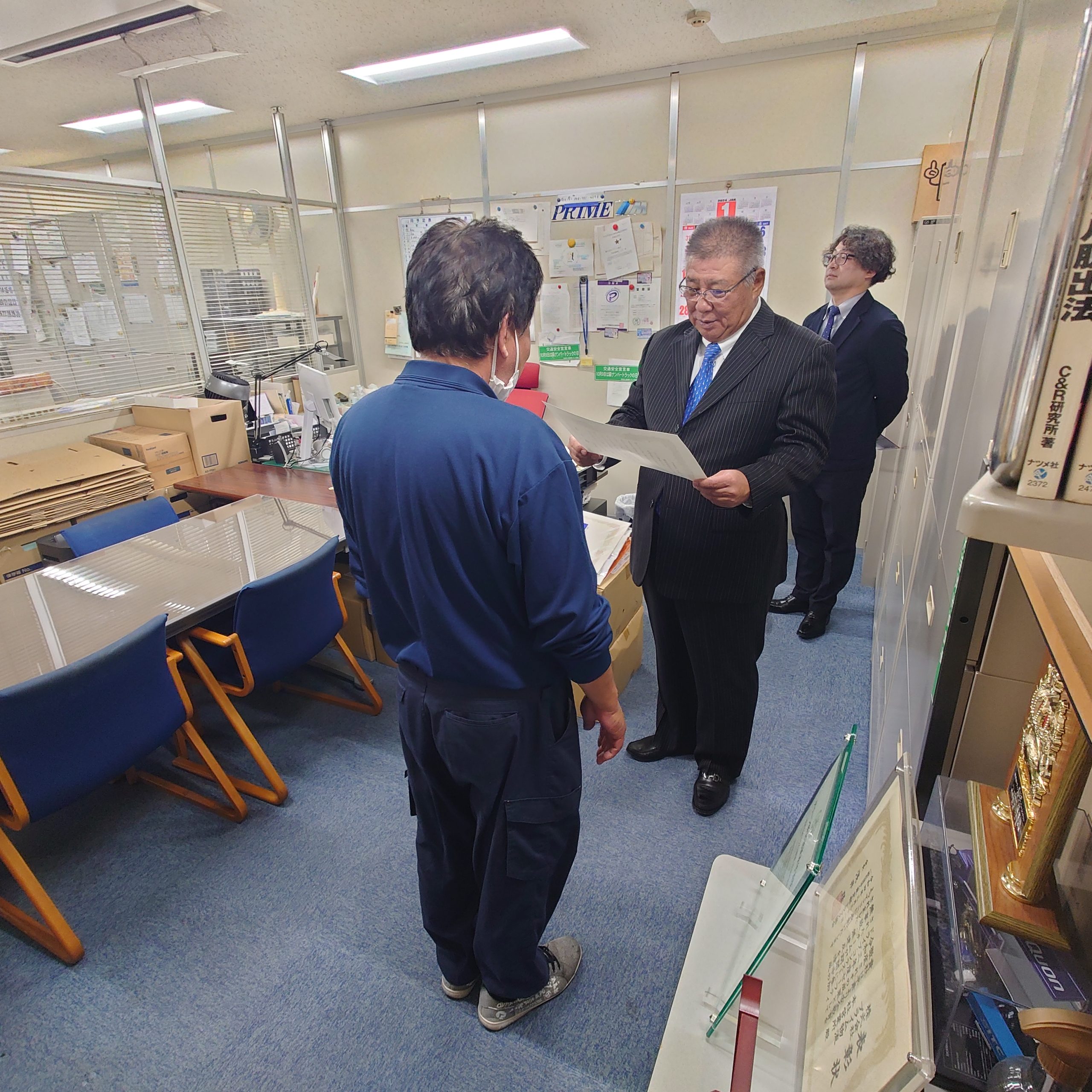年間優秀乗務員の表彰式を社長室にて