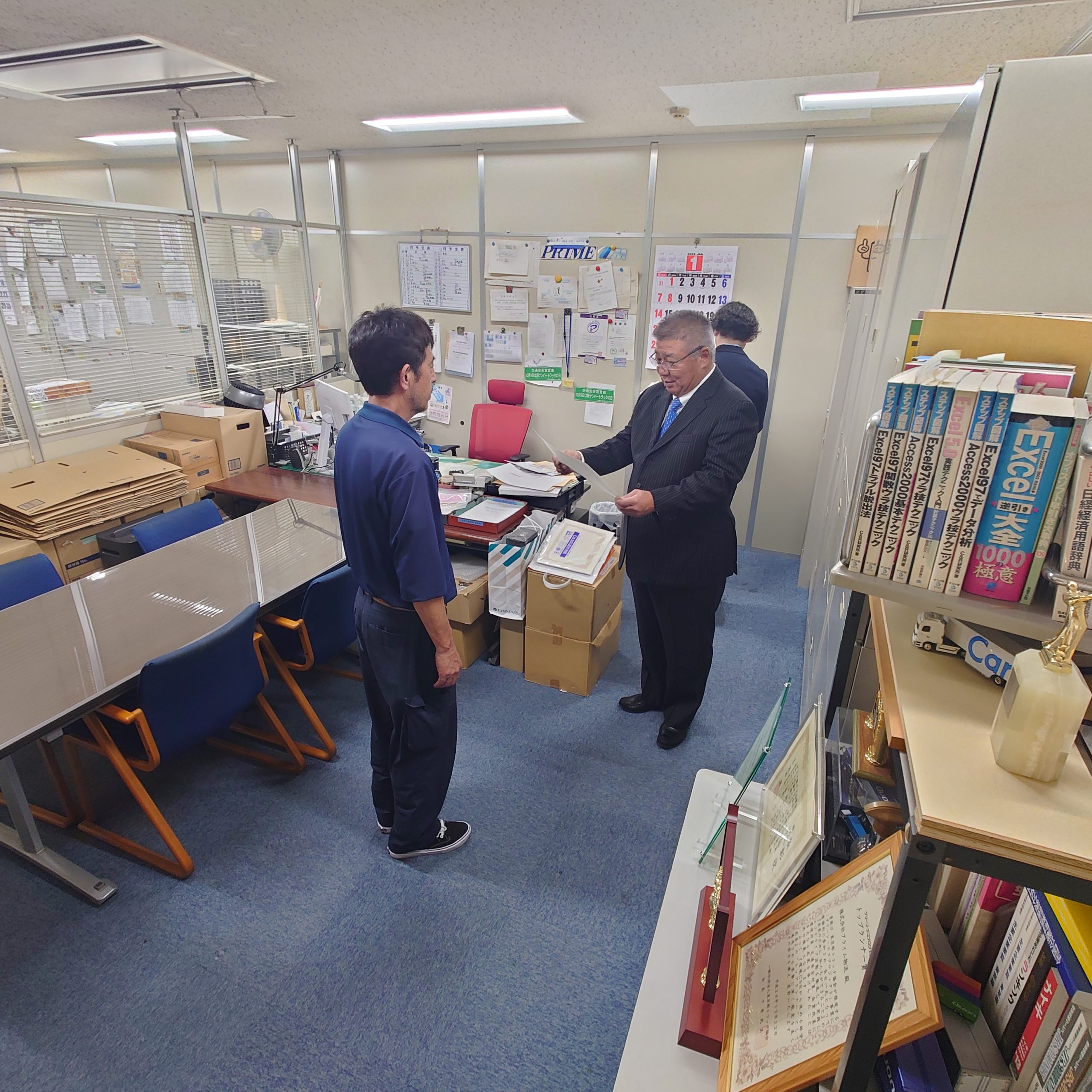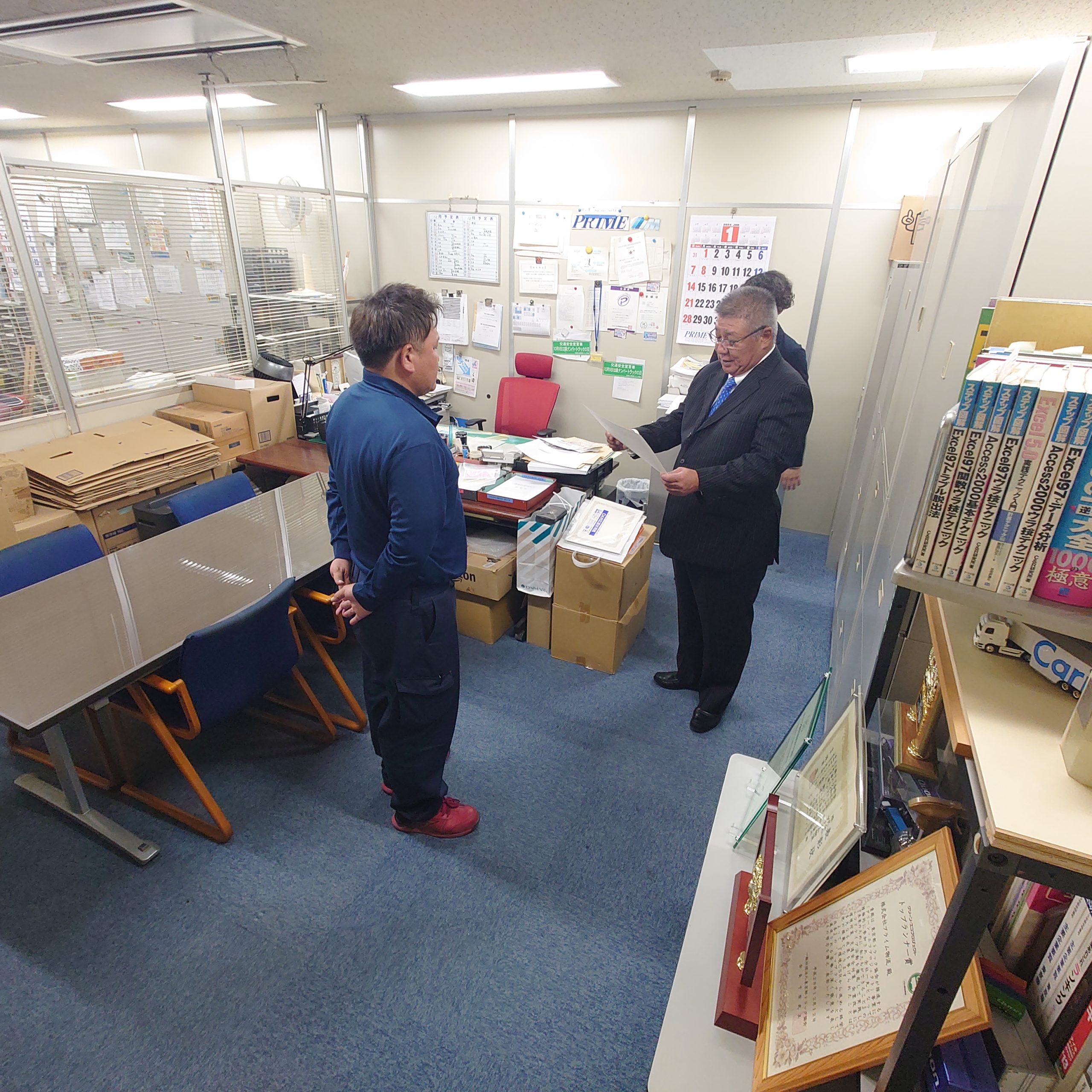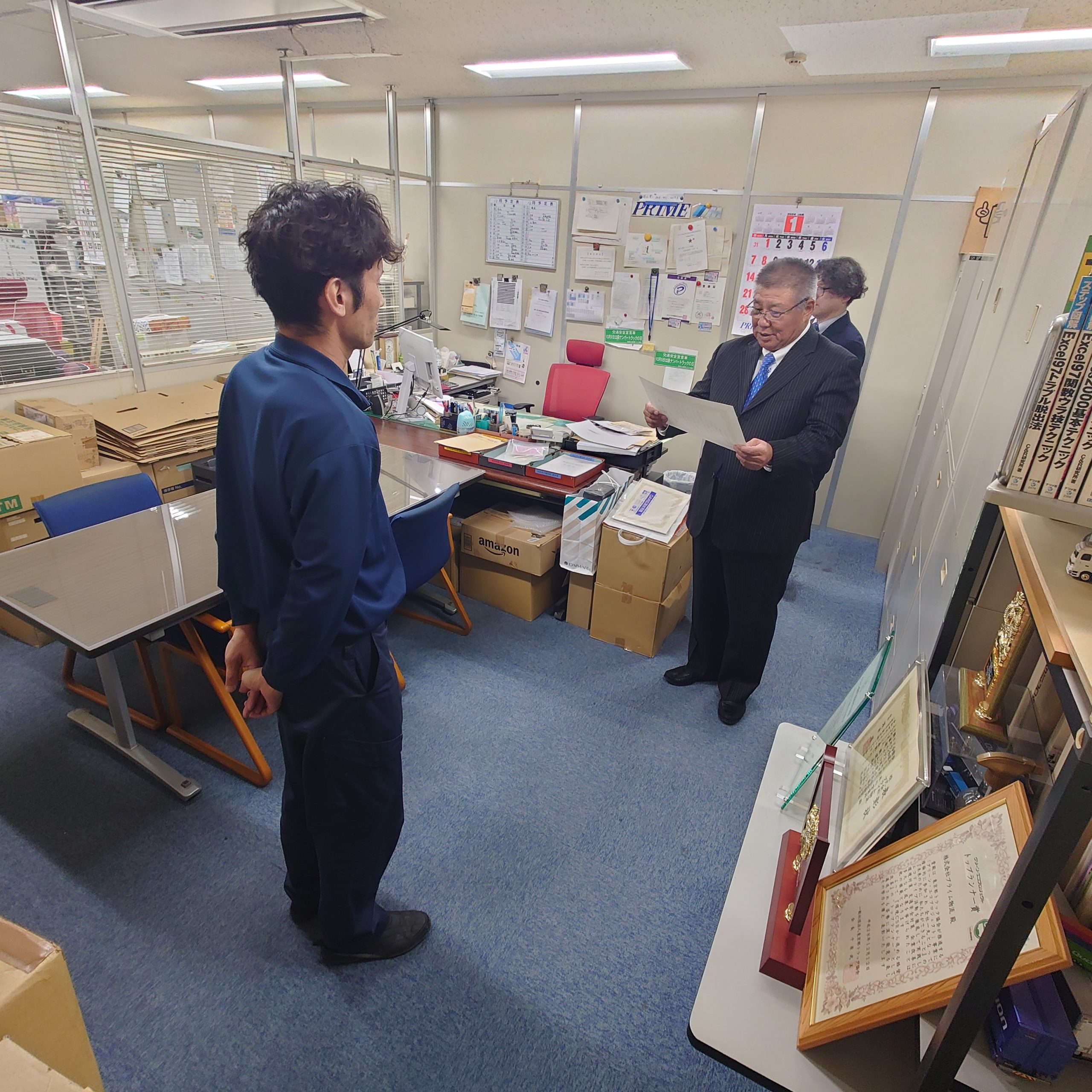 年間優秀乗務員の表彰式を社長室にて